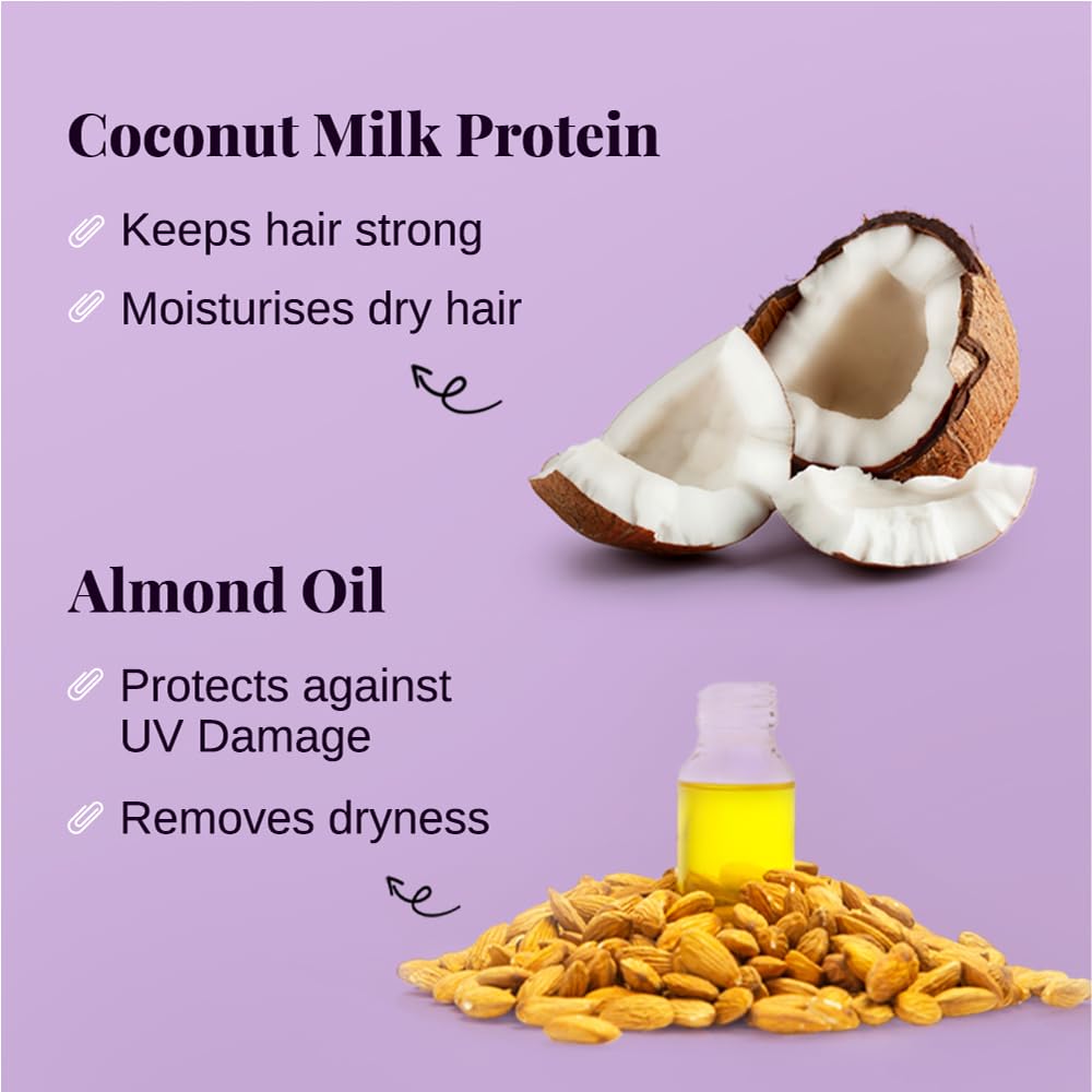 - COCONUT MILK PROTEIN (India): It has a high protein profile that can potentially keep the hair strong. The natural fatty acid profile of coconut milk has a moisturising effect to restore dry hair. It infuses protein to add strength to the hair strands thus giving dense and strong hair